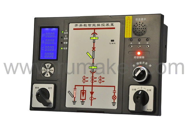 RM-KZA01開關柜智能操控裝置,產品功能強大,使用于3KV-35KV 戶內開關柜,中置柜、手車柜、固定柜、環網柜等多種開關柜。具有動態一次模擬圖、高壓帶電顯示、自動加熱除濕數據顯示及控制、斷路器分合狀態指示、儲能指示、接地開關狀態指示、小車位置指示、分合閘回路完好指示、人體感應及柜內照明以及無線測溫功能、語音防誤提示等功能,可取代現有的一次回路模擬圖、帶電顯示器、自動加熱除濕控制器、斷路器分合按鈕等。并且具有RS485通訊接口,通訊協議為MODBUS通訊協議,能夠使開關柜進一步智能化,網絡化,數字化,方便廣大用戶使用與操作。